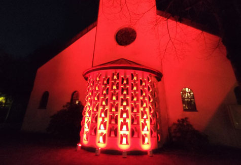 Die Katholische Kirchengemeinde Christus König wird sich in diesem Jahr erstmals am Aktionszeitraum des Vereins Kirche in Not beteiligen. Hierbei wird die Katholische Kirche in Halver vom 05. bis zum 09.11.2025 rot angestrahlt.